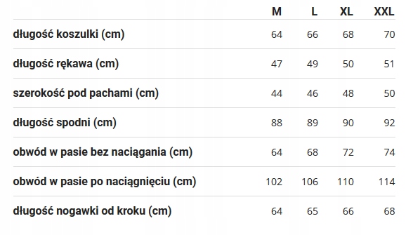 Podane powyżej sugestie są jedynie próbą zobrazowania rozmiarówki, w zależności od proporcji tkanki tłuszczowej do tkanki mięśniowej oraz indywidualnych cech budowy ciała dobór rozmiaru może być inny.