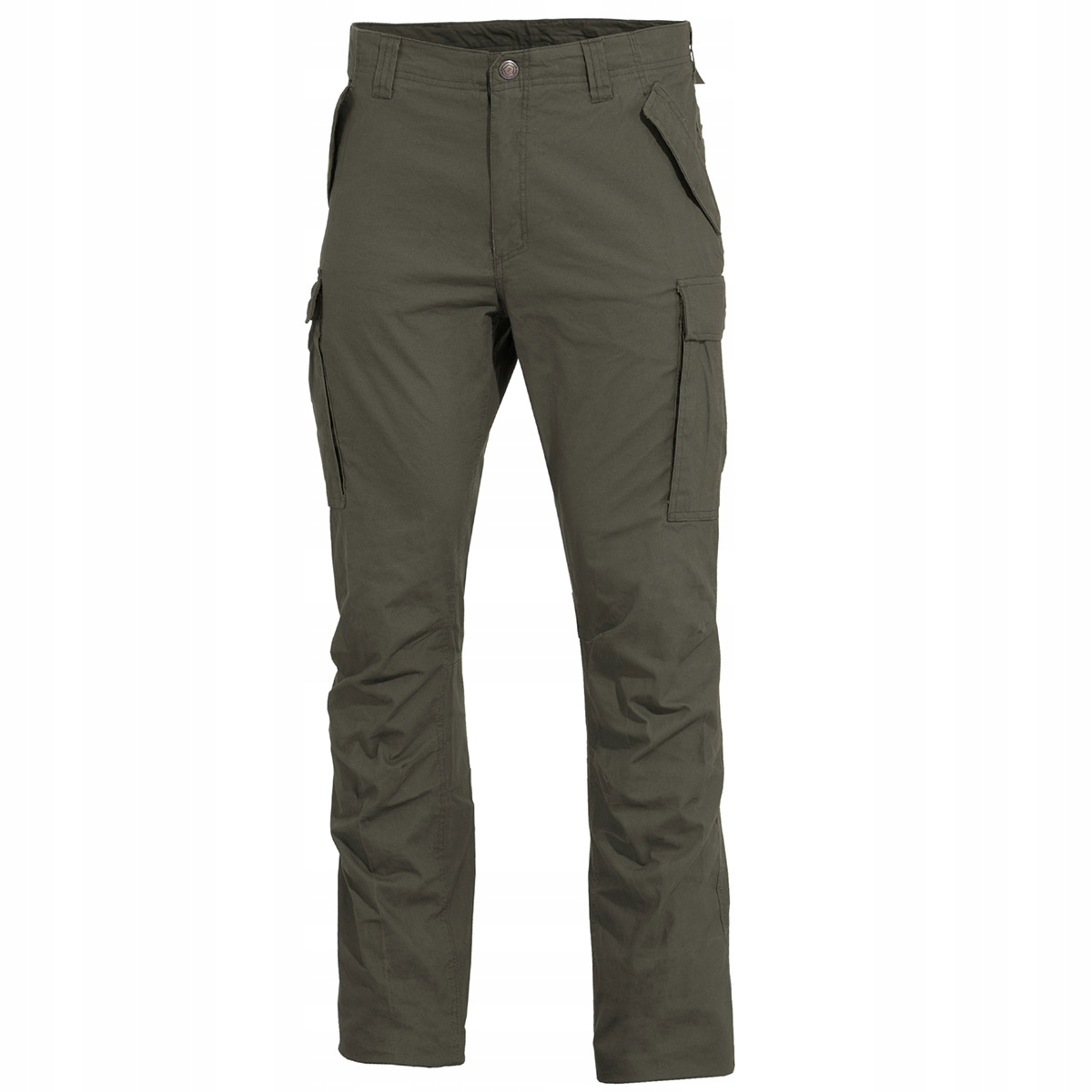 Spodnie typu bojówki wykonane w popularnym kroju M65. Uszyte z trwałej i lekkiej bawełny. Cechuje je duża wytrzymałość na rozdarcia, dzięki zastosowaniu potrójnych szwów w najbardziej obciążonych miejscach.