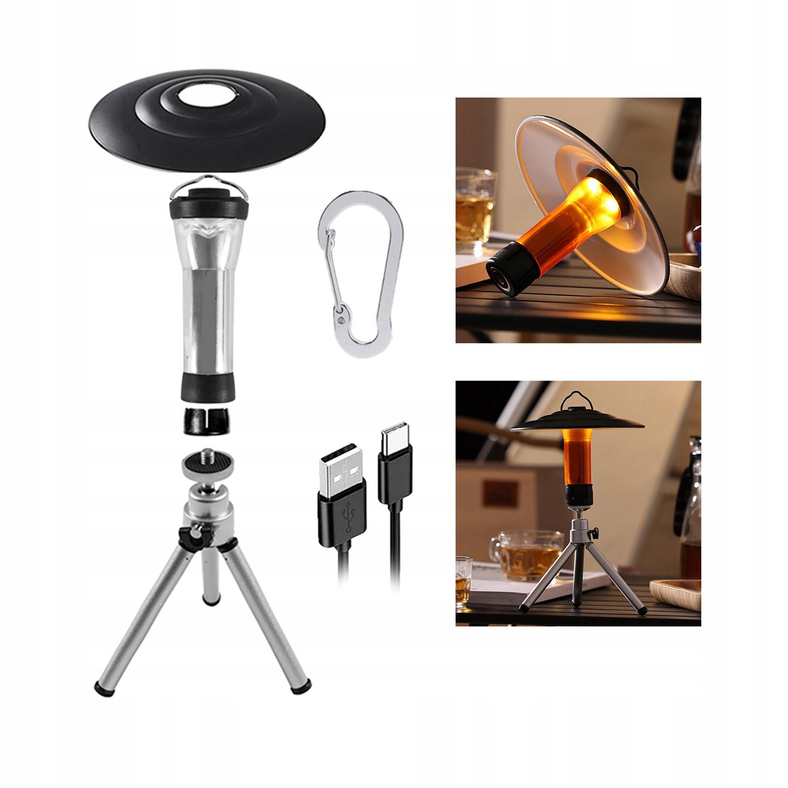 Wielofunkcyjny: 3 tryby regulacji (latarka/lampa kempingowa o wysokim świetle/lampa kempingowa o słabym oświetleniu), bateria 2600 mAh i ładowanie przez USB, mogą być używane w różnych trybach w zależności od różnych scen.