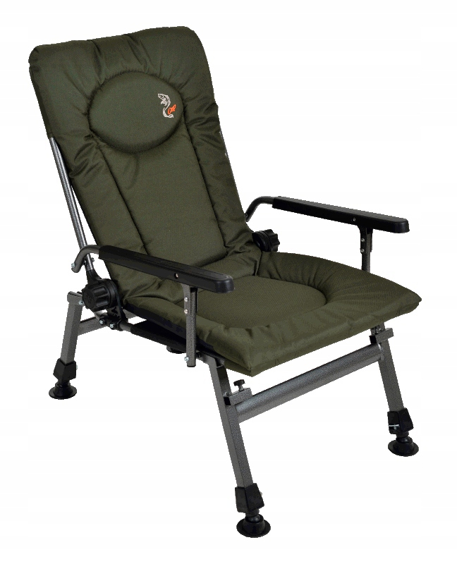 Fotel F5R jest fotelem turystyczno-wędkarskim, posiadającym podłokietniki płaskie oraz regulowane oparcie do pozycji leżącej. Model wyposażony jest w system umożliwiający przymocowanie podnóżka. Każda noga regulowana jest osobno dzięki czemu świetnie sprawdza się na nierównym lub pochyłym terenie zakończona szeroką stopką zapobiegającą zapadaniu się na grzązkim lub miękkim podłożu.