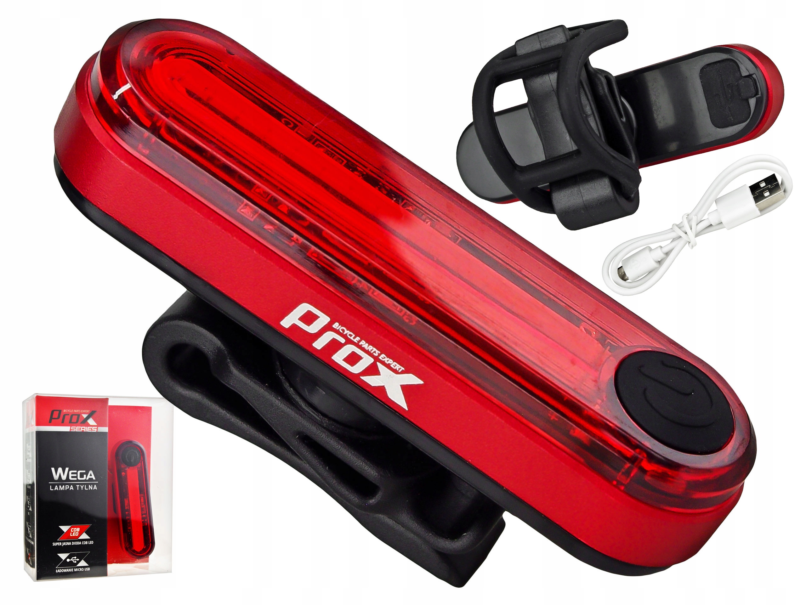 Tylna lampka WEGA została wyposażona w wysokiej jasności diodę COB LED o mocy 40 LM. Nie wymaga użycia baterii - zintegrowany akumulator jest ładowany przy pomocy dołączonego do zestawu kabla USB.