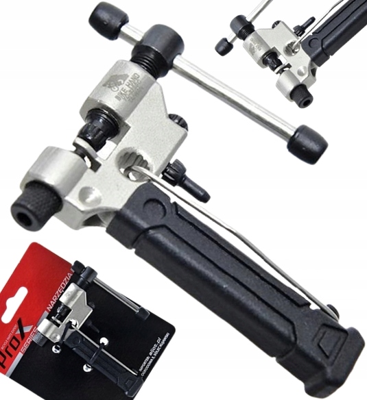 Skuwacz rozkuwacz do łańcucha rowerowego ze stali narzędziowej, z wymiennym pinem i uchwytem do przytrzymywania łańcucha w trakcie pracy. Wygodna rączka z tworzywa, zapewnia pewny chwyt w trakcie pracy.