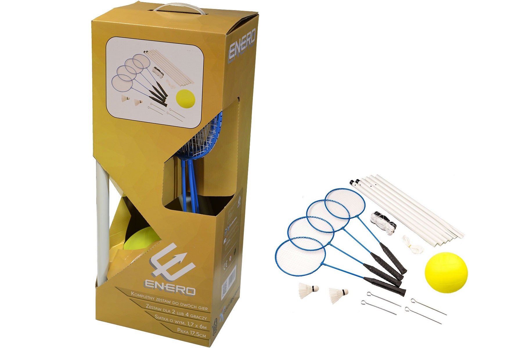 ENERO MEGA ZESTAW DO BADMINTONA SIATKÓWKI 4 GRACZY