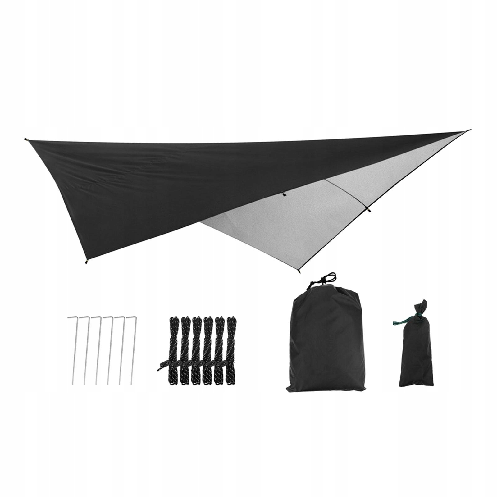 Wodoodporny Namiot Przeciwdeszczowy Tarp Kempingowy Plandekowe Czarny Srebrny