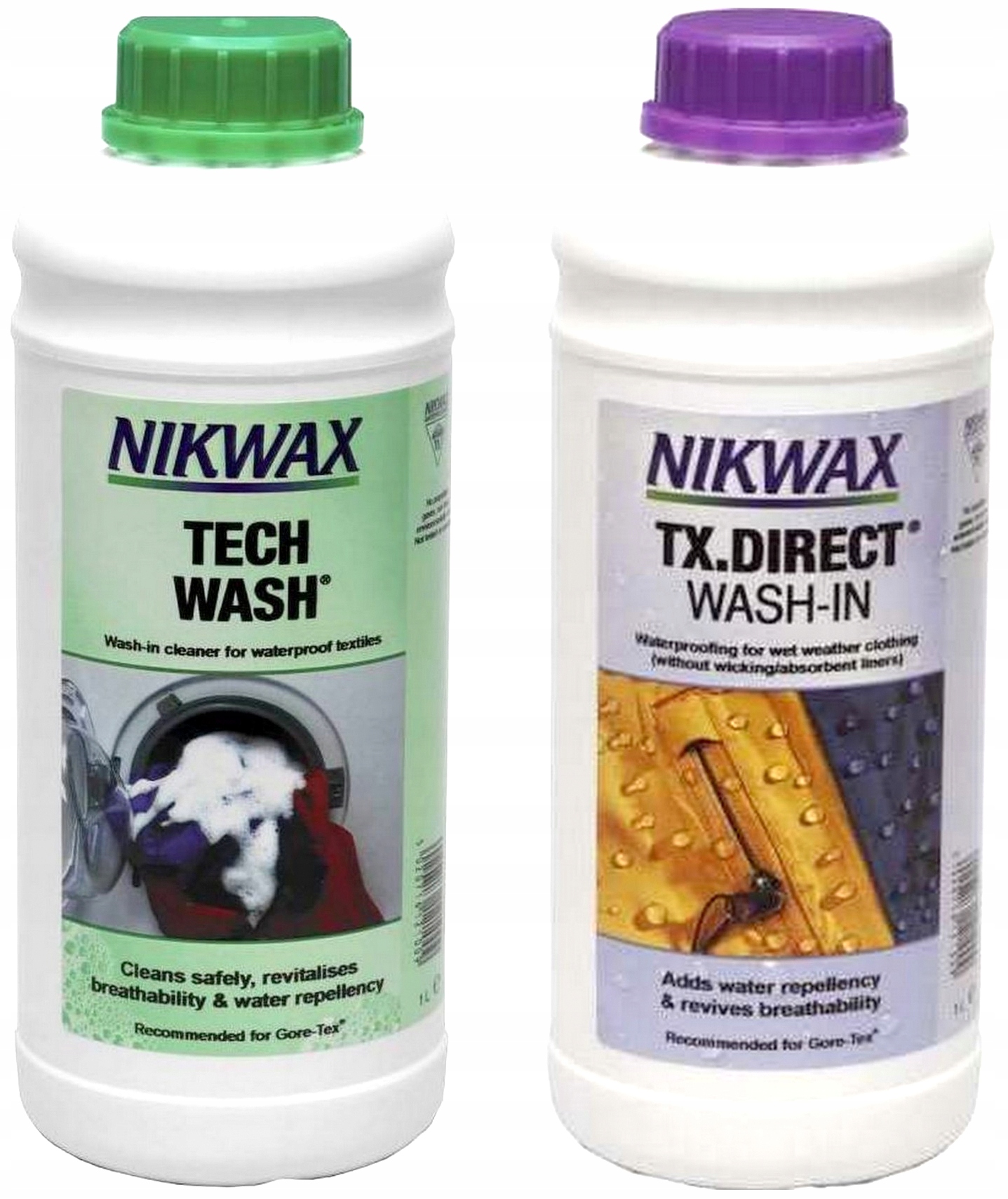 Nikwax Tx Direct jest impregnatemdo odzieży przeciwdeszczowej do prania w pralce lub ręcznie.
