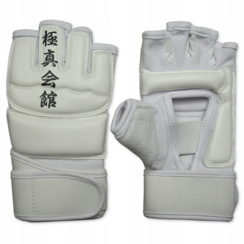 Lekkie rękawice do Karate Kyokushin dedykowane dla dzieci , młodzieży jak też i dorosłych (rozmiar XL). Wykonane z elastycznej tkaniny i skaju, zapinane na rzep, z nadrukiem Kyokushinkai.