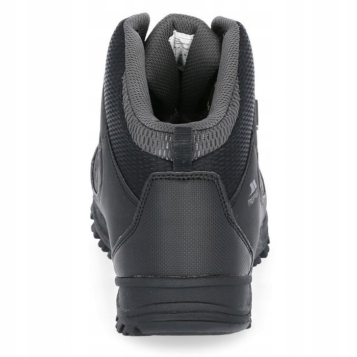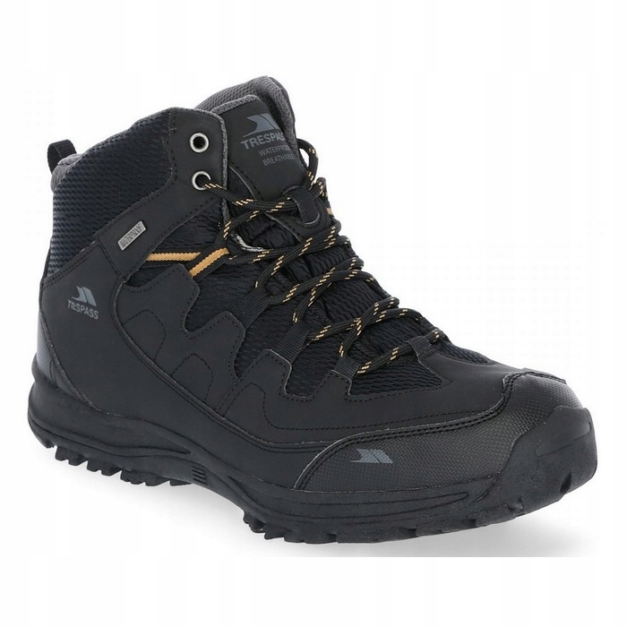 Buty trekkingowe wysokie męskie Finley marki Trespass wykonane zostały z mocnego materiału PU, oraz gęstej, oddychającej siatki.