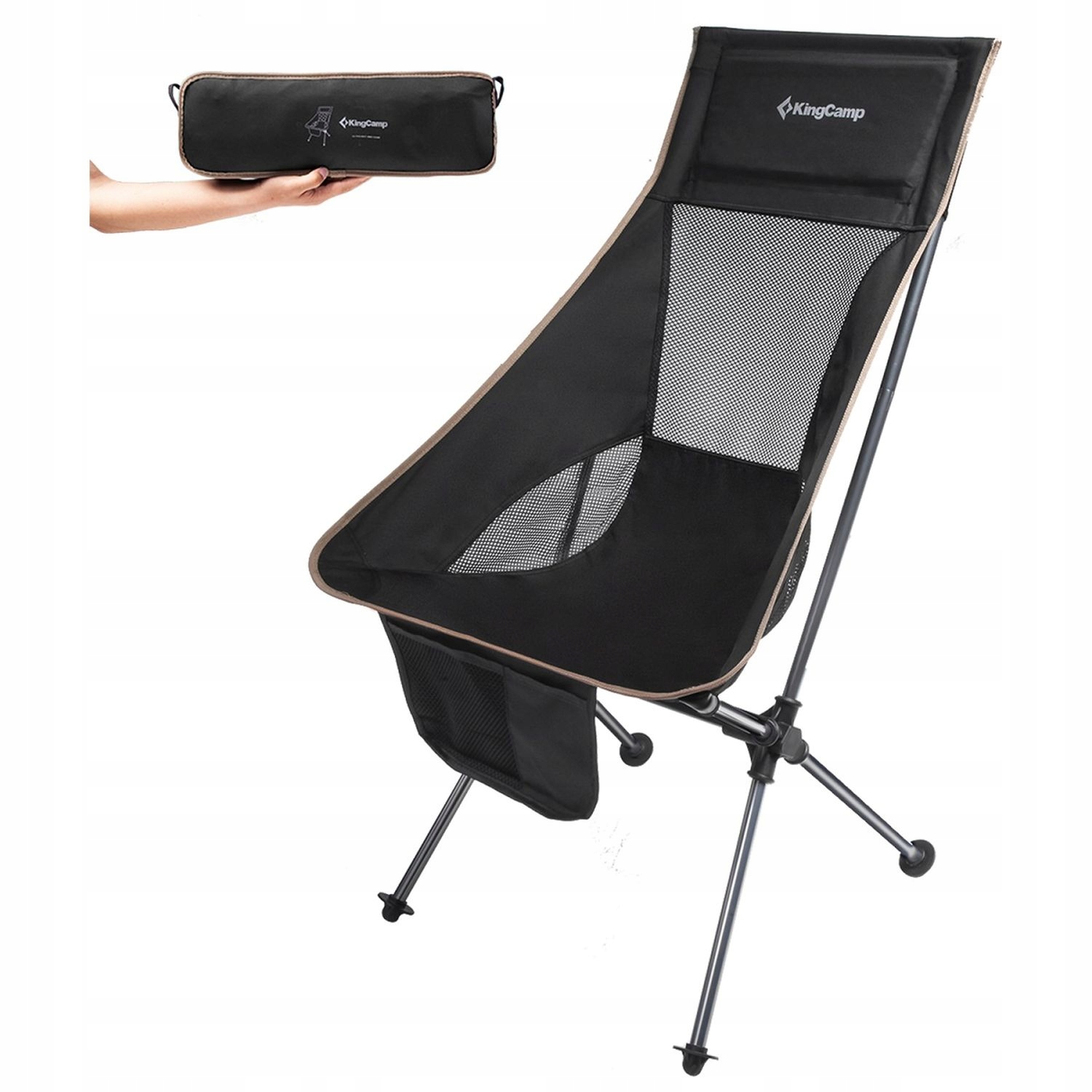 Krzesło Turystyczne Kempingowe Wędkarskie Składane KingCamp Wysokie 150 kg (MAS-KC1908)