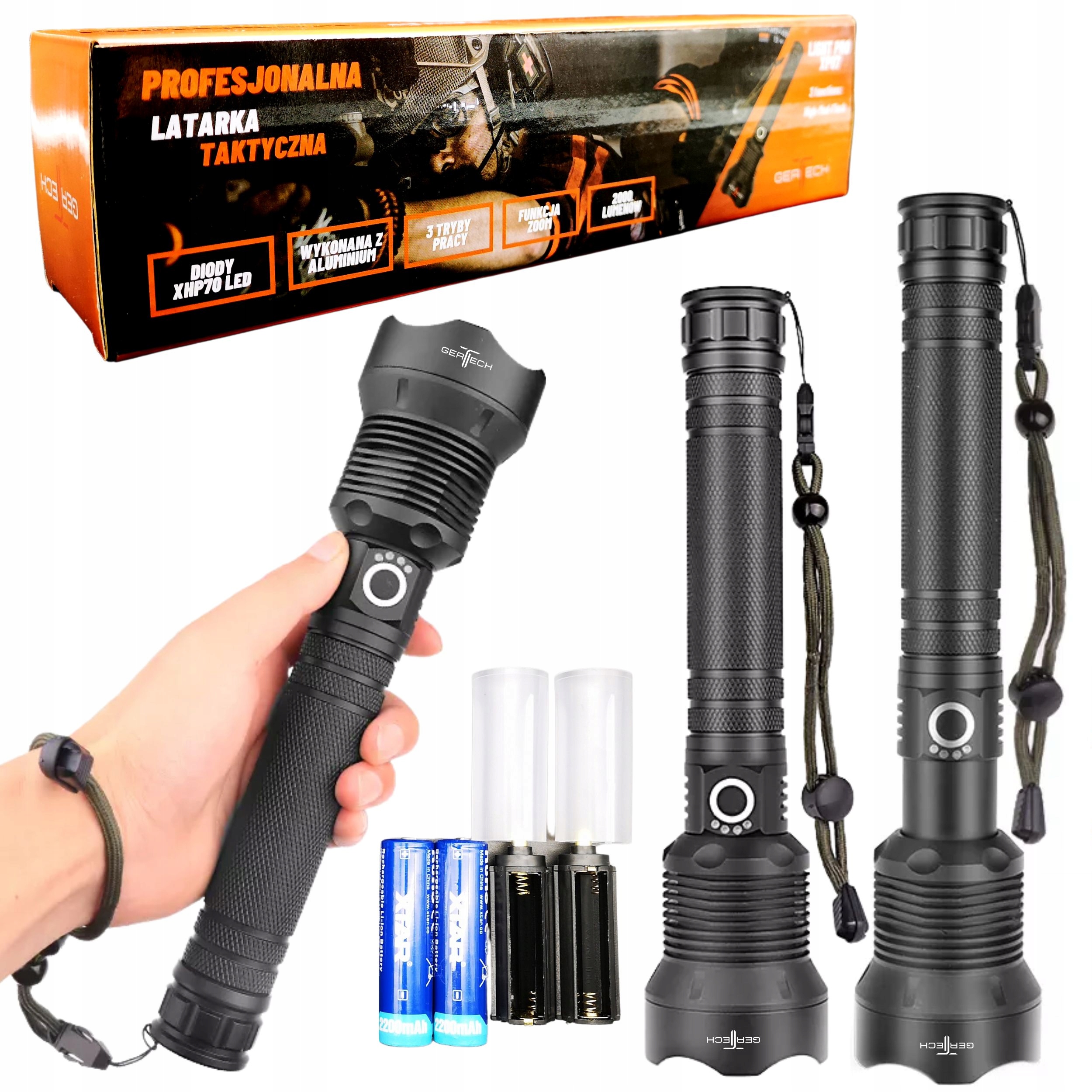 - ✅Latarka PRO XP07 GERTECH ✅ 2x Oryginalny Akumulator 2200mAh, ✅ Pasek na rękę ✅Kabel USB-C ✅ Oryginalne opakowanie