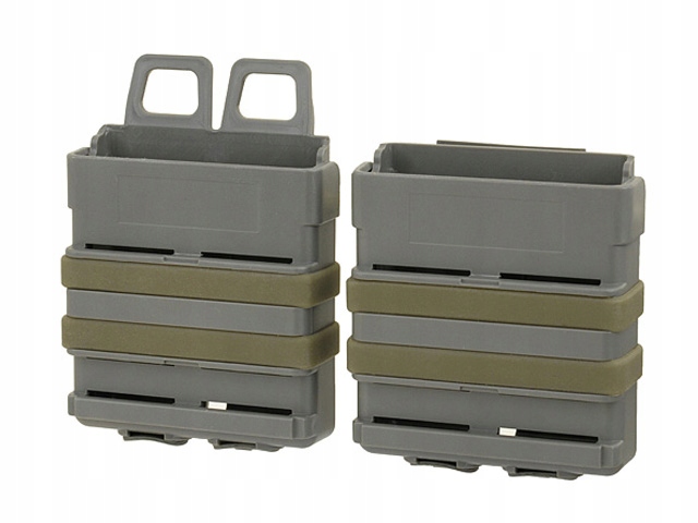 Ładownice typu FAST, wykonane z mocnego tworzywa polimerowego. Przeznaczone dla replik magazynków typu 7,62, np. AK, M14, etc. Nie posiadają klap, co umożliwia błyskawiczne dobycie magazynka, a jednocześnie trzymają go pewnie i nie pozwalają na przypadkowe wypadnięcie, nawet po montażu "do góry nogami". Zapewnia to konstrukcja ładownicy - składa się ona z dwóch połówek, mocno ściśniętych silikonowymi gumami.