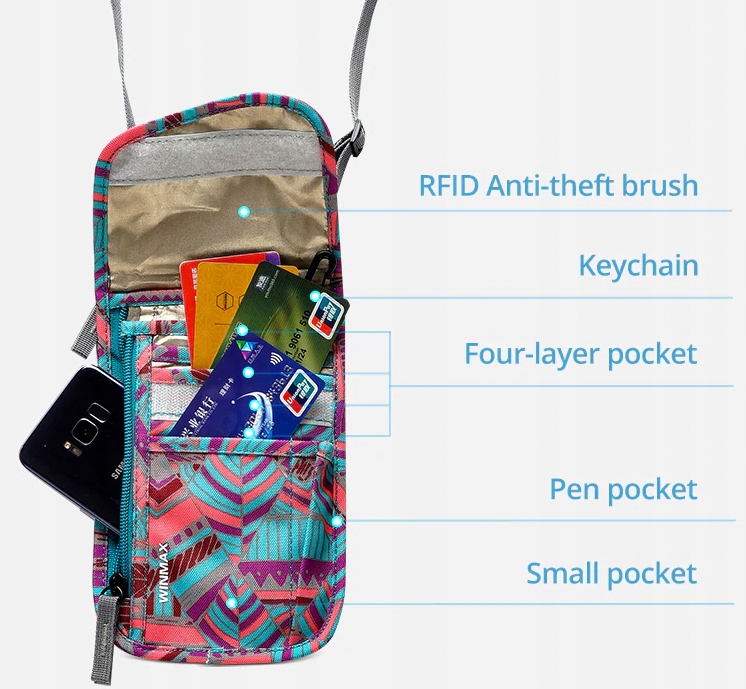 Prezentujemy Paszportówkę WINMAX PREMIUM z podszewką z materiału RFID. Wykonana jest z wytrzymałej wodoodpornej tkaniny nylonowej 210D. Materiał jest wygodny, odporny na zużycie, mocny i trwały, dzięki czemu gotówka, rachunki i ważne dokumenty są uporządkowane i bezpieczne. Wodoodporny materiał zapewnia, że akcesoria nie zmokną podczas podróży w deszczu.
