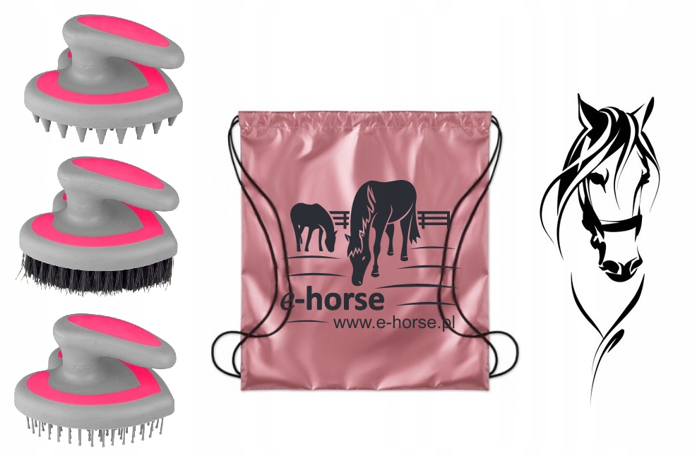 Zestaw szczotek różowych dla konia w perłowym worku