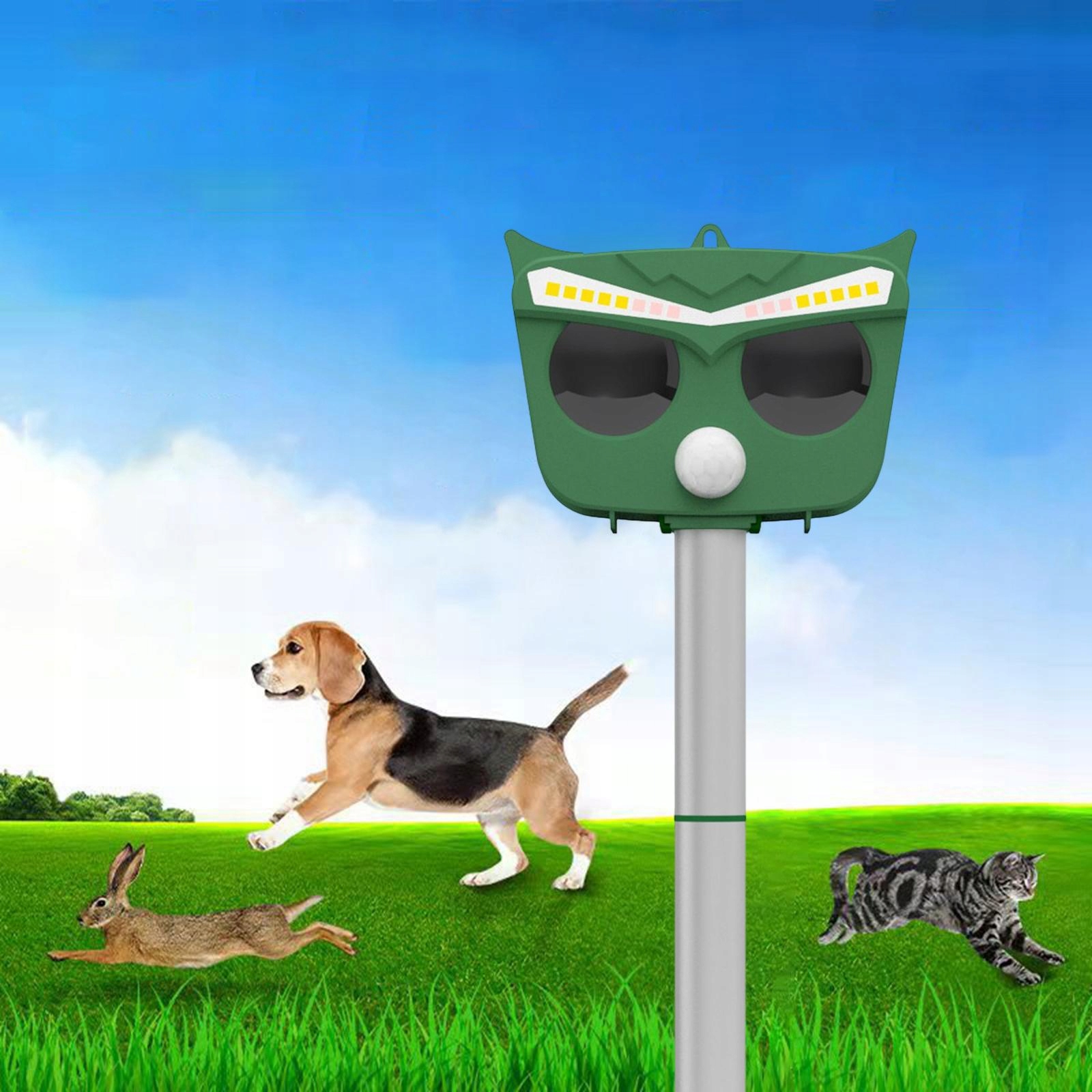 Trzymaj zwierzęta z daleka: zwierzęta emitują mieszankę , regulowanych częstotliwości i potężnych migających świateł stroboskopowych LED oraz , odpędza koty, psy, wiewiórki, jelenie, niedźwiedzie, ptaki, skunksy, nietoperze, szczury, lisy, szopy, myszy i wiele innych.