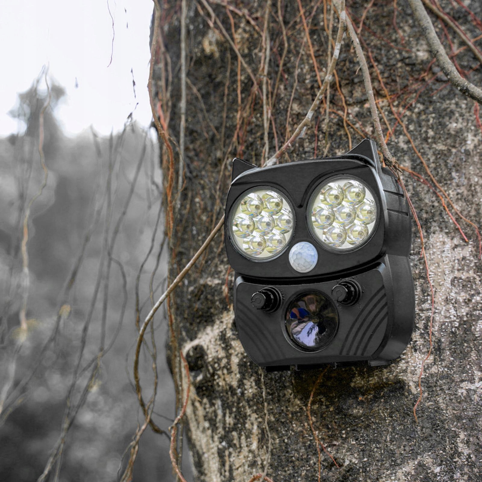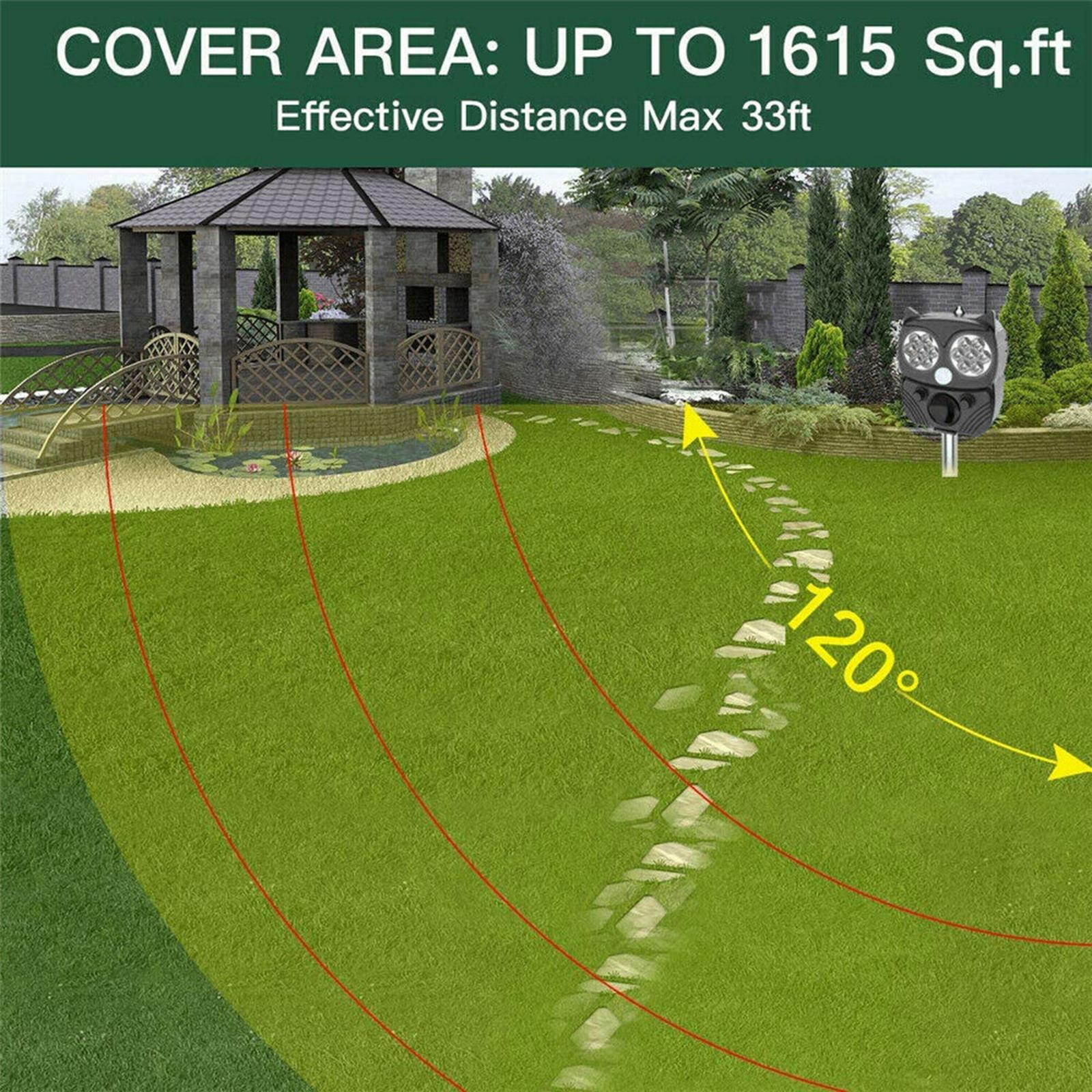 Odstraszacz pozbywa się wszystkich zwierząt i szkodników, emitując sygnały ultradźwiękowe, dźwiękowe i wydające migające światła stroboskopowe LED, odstraszając szkodniki/zwierzęta do opuszczenia obszaru